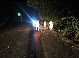 时间2025年10月1日,地点G318欧家垭口处,处理路面倒树,覆盖面积500米,影响夜间车道通行。